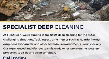 Fitz2Kleen handle deep cleans, hoarder clearance, biohazard & trauma cleaning.